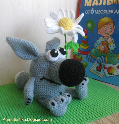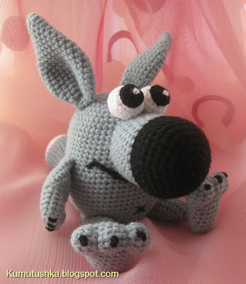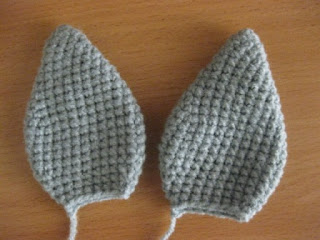 Конец нити прячем внутрь головы. Находим наиболее выгодное место для ушка, цепляем петельку и вяжем в нее: в.п., 4 сбн, сс. Нить обрезаем и ее конец также прячем внутрь.